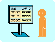 ユーザIDとは、システムに登録している個々のユーザを識別するための文字列です。ログインするときにユーザIDがコンピュータ側で確認されることで、各ユーザに応じた環境設定も行われます。 |